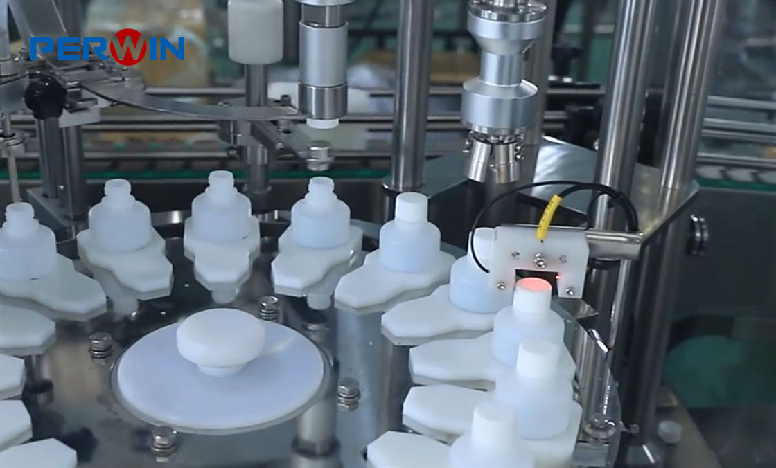 Remplissage de suivi à double poste. Retrait automatique des bouchons par manipulateur, technologie de pré-bouchage et de bouchage, entraînée par un mécanisme à came de précision. La technologie servo contrôle le couple de bouchage. Unité de tri automatique des bouchons et capot insonorisé. Remplissage par levage pour éviter les éclaboussures.